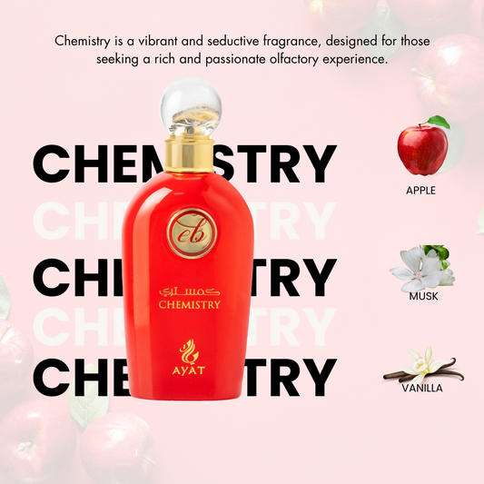 Chemistry is a vibrant and seductive fragrance, designed for those seeking a rich and passionate olfactory experience. This harmonious fragrance combines fruity, floral and woody notes to create a captivating composition, evoking romance and seduction.