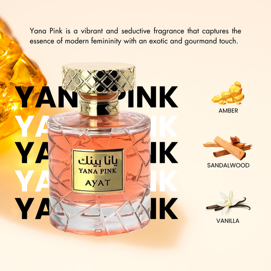 Meet YANA PINK. A fragrance that beautifully blends Amber, Sandalwood and Vanilla, capturing the essence of every girl’s favorite vanilla perfume. Indulge in this enchanting scent that evokes warmth and elegance, perfect for any occasion.